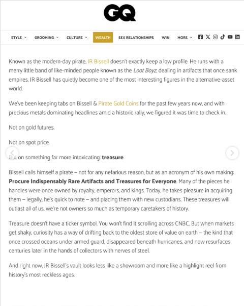 With precious metals surging, GQ checked in with JR Bissell — the modern-day pirate trading history beyond markets.