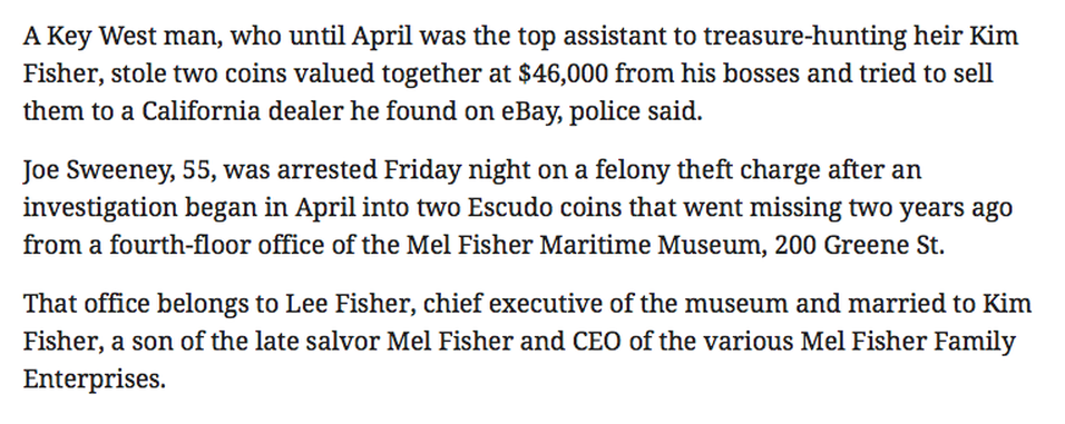 Fisher, stole two coins valued together at $46,000 from his bosses and tried to sell
