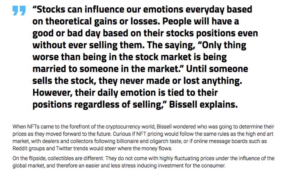 When NFTs came to the forefront of the cryptocurrency world, Bissell wondered who was going to determine their